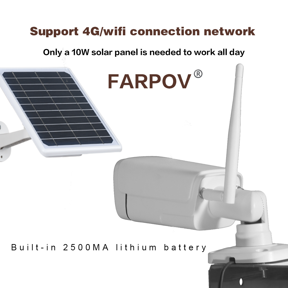 5. The camera is equipped with a lithium battery and can be powered by a 5V external power supply using a waterproof aviation plug (converted to USB). With the provided solar panel, the camera can be continuously powered, eliminating concerns about power supply. It can also be powered by 220V, power banks, or other 5V DC sources (USB interface).